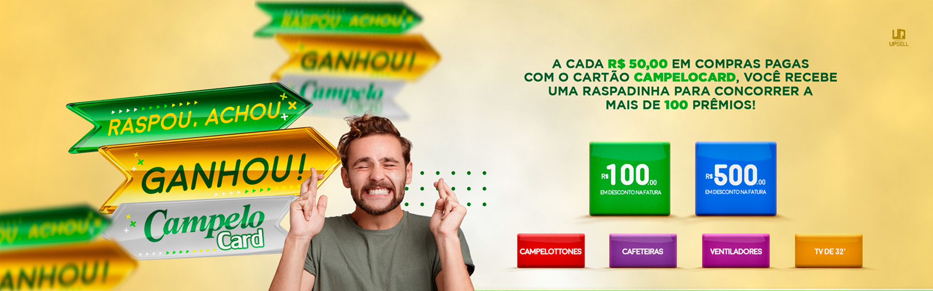 A cada R$ 50 em compras pagas com o Campelo Card, você ganha uma raspadinha.